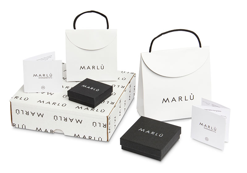 Ogni gioiello acquistato viene inserito all'interno della propria scatolina con certificato di garanzia, all'interno della scatola di spedizione viene inserita la shopper Marlù per ogni gioiello acquistato così da poterlo confezionare.
